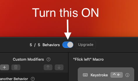 If you don't turn on the switch at the top of the window, the Behaviors you created won't work.